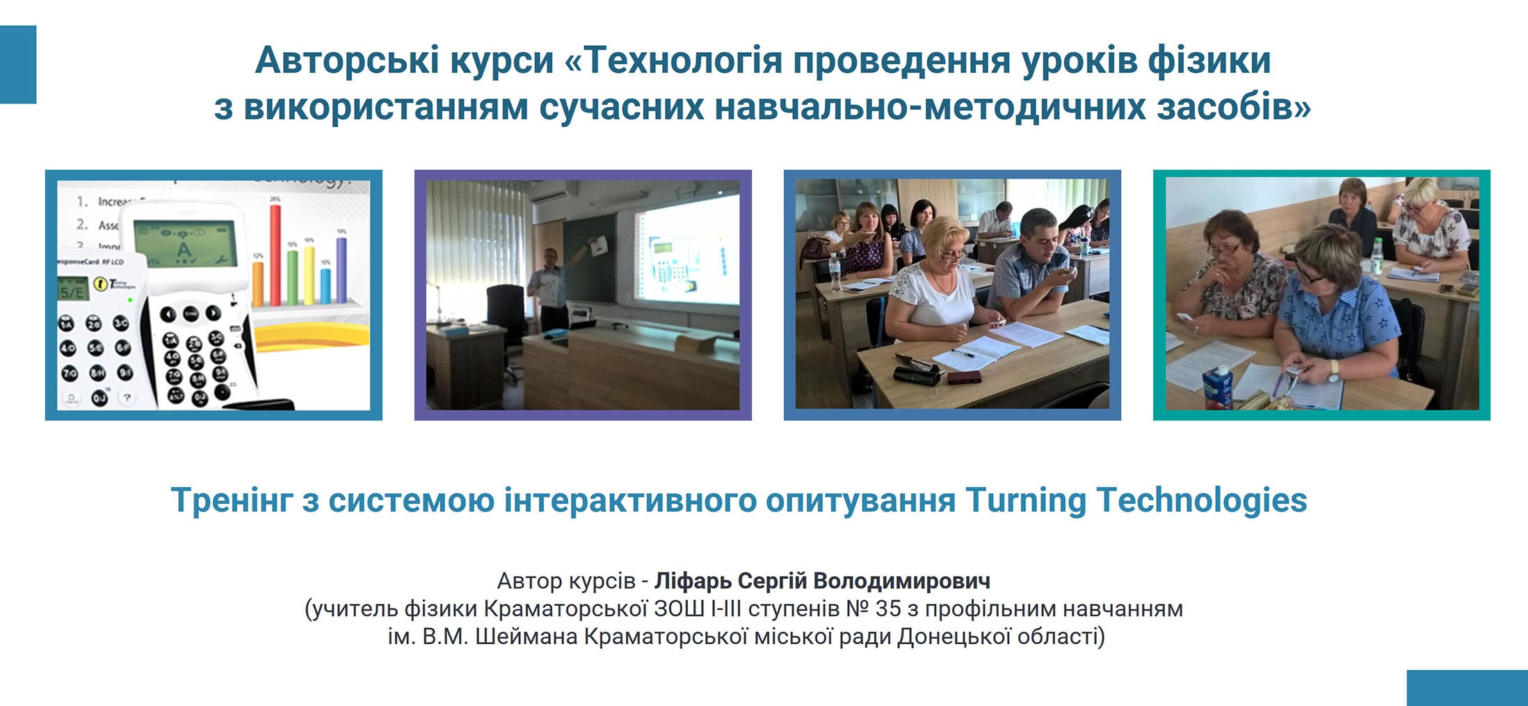 Подібні семінарські та практичні заняття для керівників районних та міських методичних об'єднань вчителів фізики відбуваються в м. Краматорську на базі Ліцею №35 ім. В.Шеймана за планом роботи професійної спільноти вчителів фізики м. Краматорська або планом ДоноблІППО.